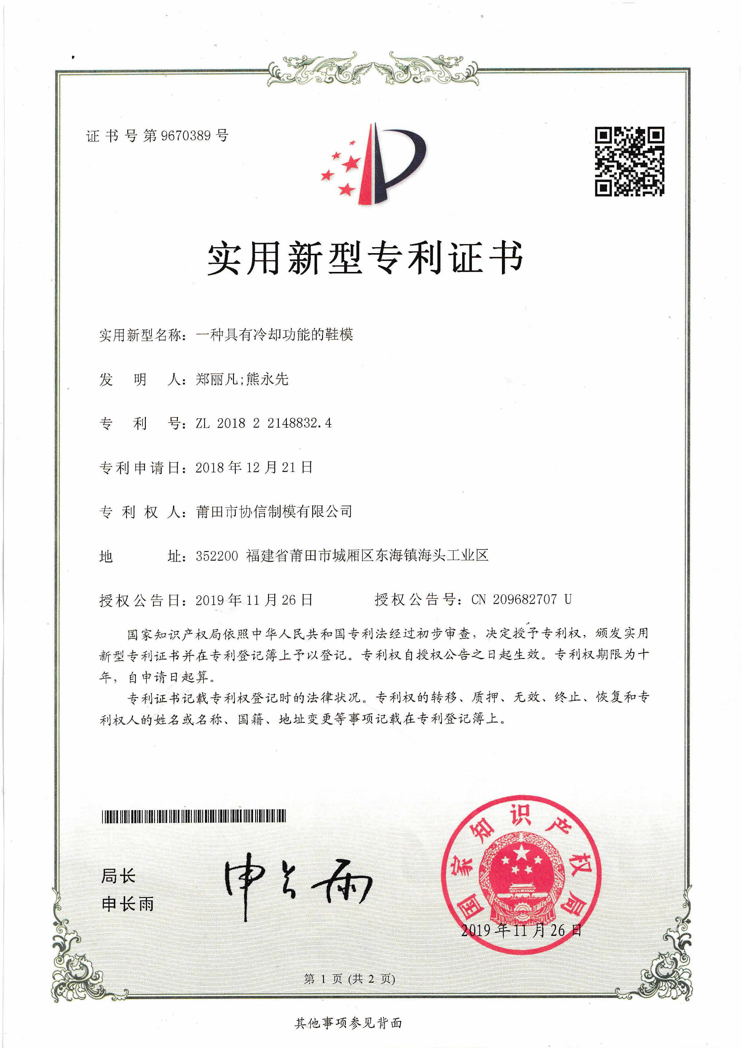 公司有26個實用新型專利證書...